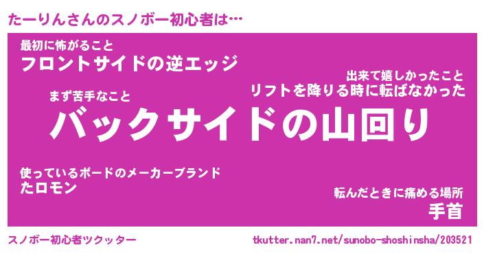 | ヘコむあだ名 | 『たーにー』『なまこ酢』『たーっ子』 |