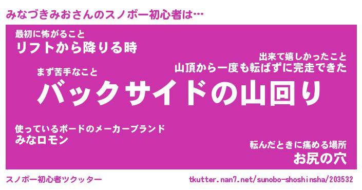 | ヘコむあだ名 | 『みなにー』『レバニラ』『みなっぺ』 |