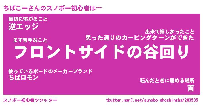 | ヘコむあだ名 | 『ちばっふぃ~』『つくし』 |