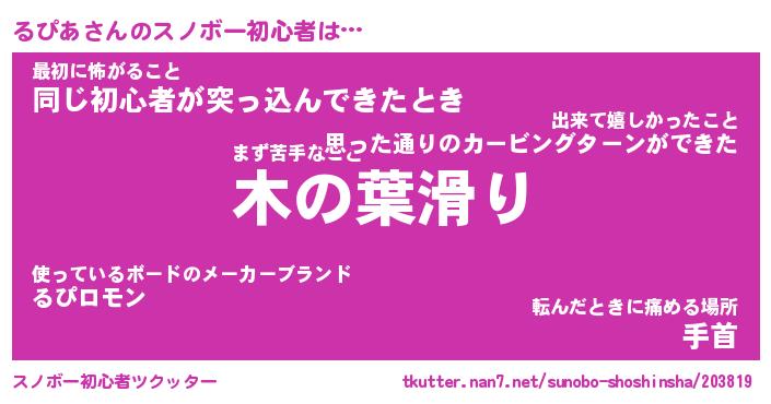 | ヘコむあだ名 | 『るぴにー』『レバニラ』『るぴっ子』 |