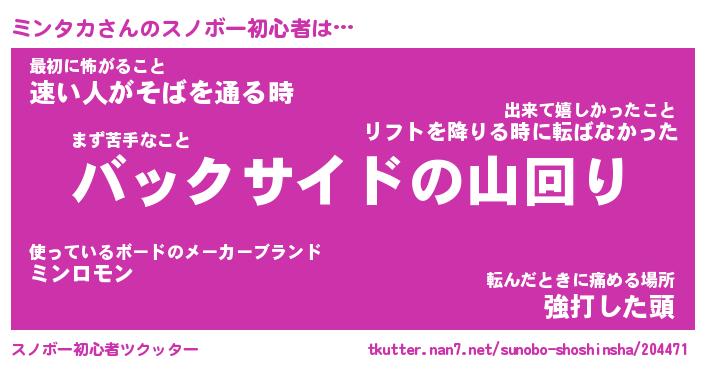 | ヘコむあだ名 | 『ミンにゅー』『酢こんぶ』『ミンを』 |