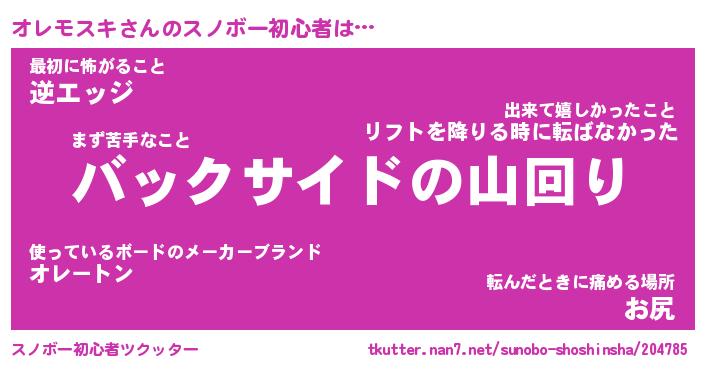 | ツイッター | オレモスキさんのツイッターID『namakemono_kun』 |