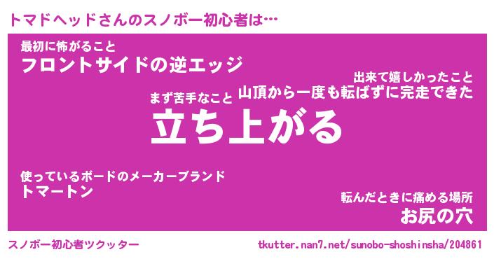 | ヘコむあだ名 | 『トマにー』『つくし』『トマぷりん』 |