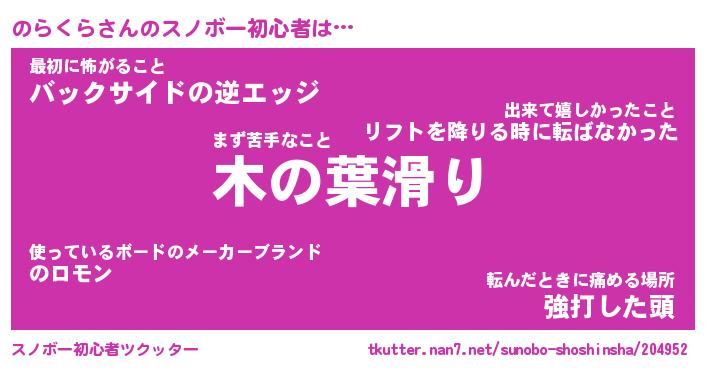 | ヘコむあだ名 | 『のらにー』『豆乳』『のらっちょ』 |