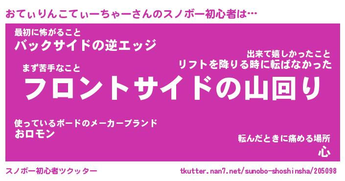 | ツイッター | おてぃりんこてぃーちゃーさんのツイッターID『fukuyoka_nyan』 |
