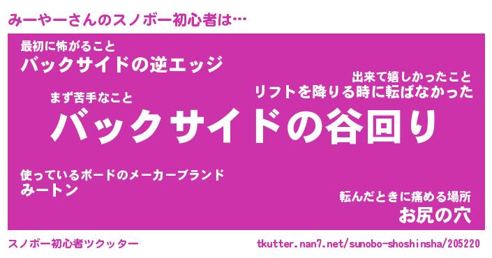 | 意味不明あだ名 | 『ペロリンみーやー』『永久保存みーやー』 |