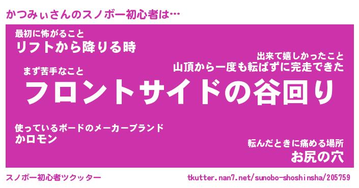 | 意味不明あだ名 | 『ペロリンかつみぃ』『永久保存かつみぃ』 |