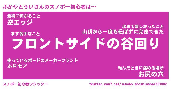 | ヒーロー風カッコイイあだ名 | 『スーパーフカヤトウイ』『魔戒騎士フカ』 |