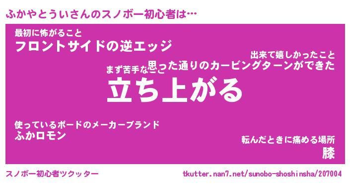 | ヒーロー風カッコイイあだ名 | 『スーパーフカヤトウイ』『天弓騎士フカ』 |