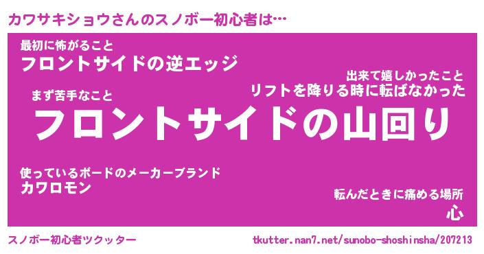 | 男性向けラノベタイトル風あだ名 | 『カワサキショウアートオンライン』 |