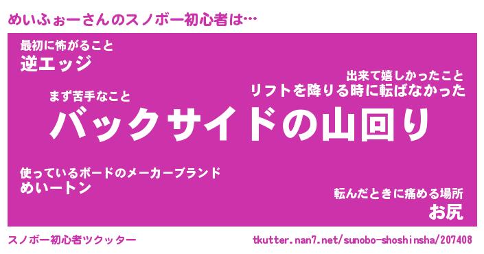 | 欧米人風あだ名 | 『マイケルめいふぉー』 |