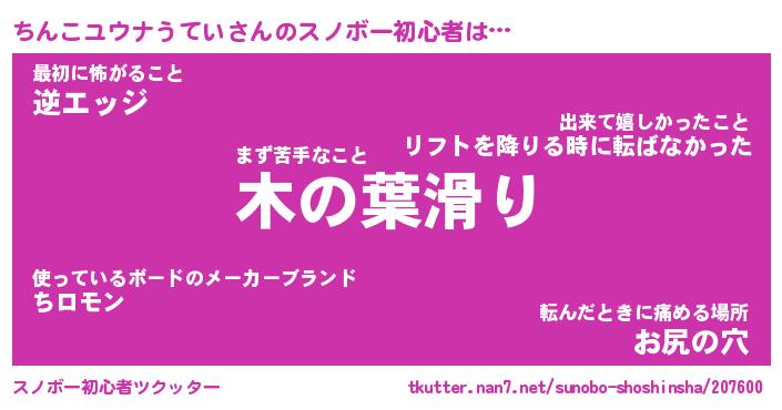 | ヘコむあだ名 | 『ちんっふぃ~』『つくし』 |