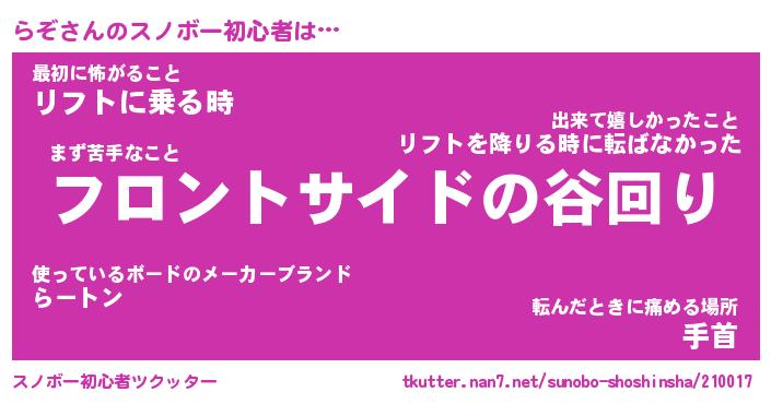 | 意味不明あだ名 | 『ペロリンらぞ』『らぞフォーエバー』 |
