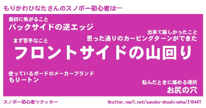 | ヘコむあだ名 | 『もりにー』『豆乳』『もり太郎』 |