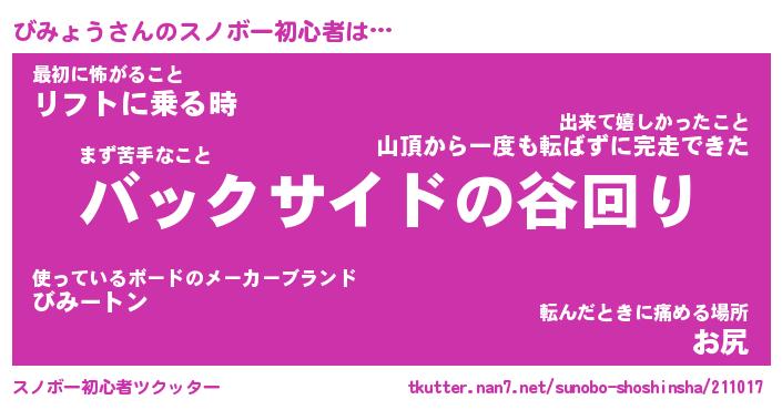 | ヘコむあだ名 | 『びみにゅー』『なまこ酢』『びみお』 |