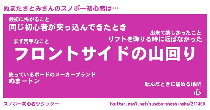 | 2回繰り返すあだ名 | 『ぬまぬま』『ぬぬまま』『いらいら』 |
