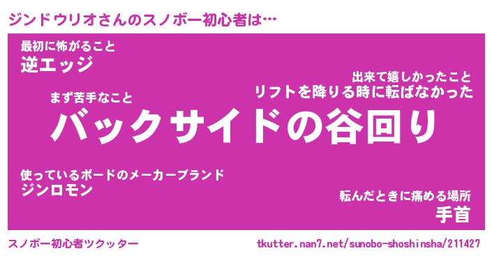 | ヘコむあだ名 | 『ジンっふぃ~』『つくし』 |