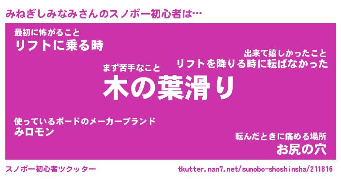 | ヘコむあだ名 | 『みねにー』『豆乳』『みねっ子』 |