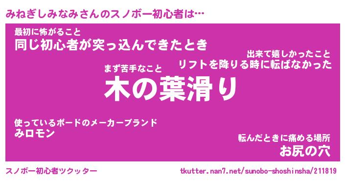 | 伝説のあだ名 | 『伝説のスナイパーみねぎしみなみ』 |