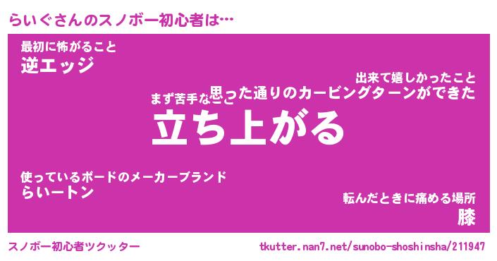 | 意味不明あだ名 | 『ペロリンらいぐ』『らいぐフォーエバー』 |