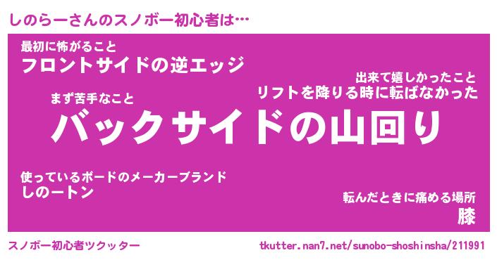 | 意味不明あだ名 | 『ペロリンしのらー』『永久保存しのらー』 |