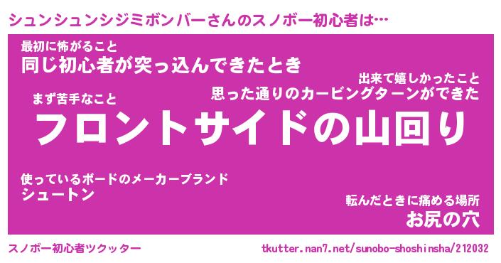 | ヘコむあだ名 | 『シュふぇ~』『つくし』『シュ太郎』 |