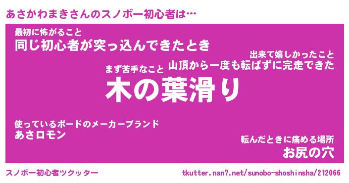 | ヘコむあだ名 | 『あさもー』『つくし』『あさを』 |