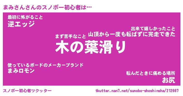 | ヘコむあだ名 | 『まみにゅー』『つくし』 |