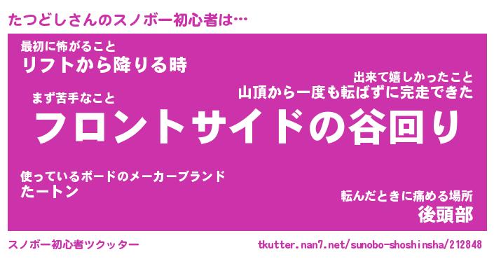 | ヘコむあだ名 | 『たつっふぃ~』『なまこ酢』 |