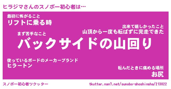 | 意味不明あだ名 | 『ペロリンヒラジマ』『永久保存ヒラジマ』 |
