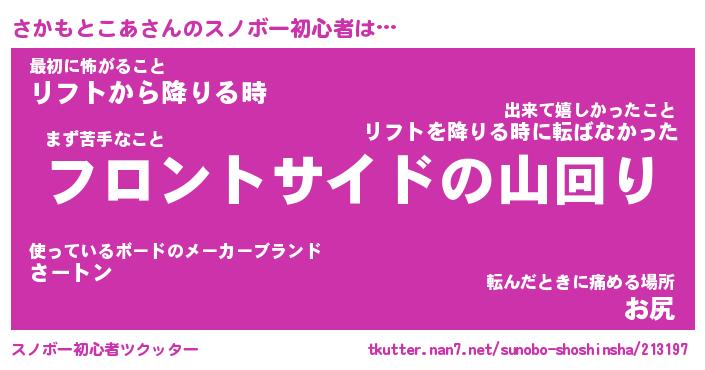 | 肩書あだ名 | 『さかもとこあ店長』『さかもとこあ班長』 |