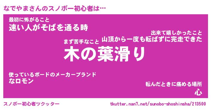 | ヘコむあだ名 | 『なでにー』『つくし』『なでぷりん』 |