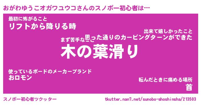 | ヘコむあだ名 | 『おがっふぃ~』『豆乳』『おが太郎』 |