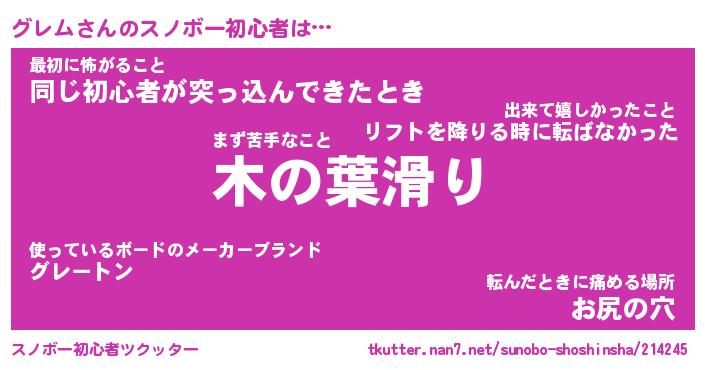 | 意味不明あだ名 | 『ペロリングレム』『グレムフォーエバー』 |