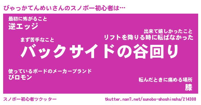 | ヘコむあだ名 | 『びゃっふぃ~』『つくし』 |