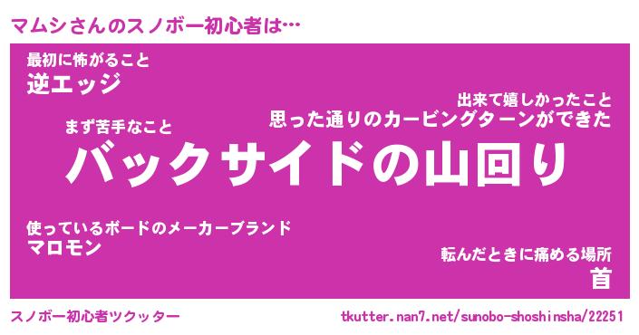 | ヘコむあだ名 | 『マムふぇ~』『つくし』『マムを』 |