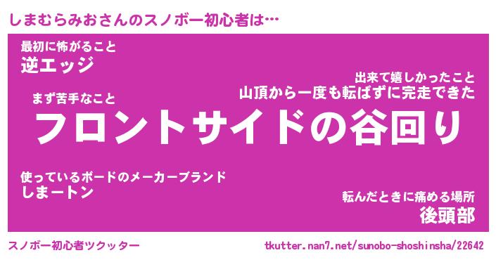 | ヒーロー風カッコイイあだ名 | 『スーパーシマムラミオ』『天弓騎士シマ』 |