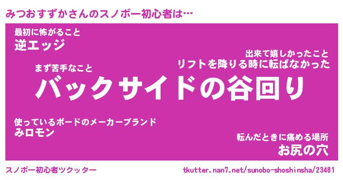 | ヒーロー風カッコイイあだ名 | 『スーパーミツオスズカ』『魔戒騎士ミツ』 |
