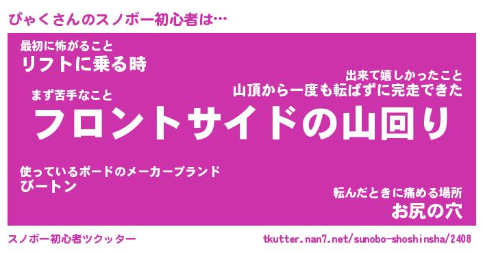 | ヘコむあだ名 | 『びゃにー』『豆乳』『びゃ太郎』 |