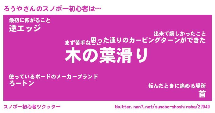 | ヘコむあだ名 | 『ろうにー』『酢こんぶ』『ろうっ子』 |