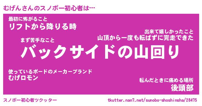 | ファンタジー風あだ名 | 『ムゲフェル』『エターナルムゲンー』 |