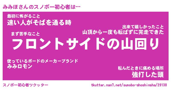 | ヘコむあだ名 | 『みみにー』『酢こんぶ』『みみお』 |
