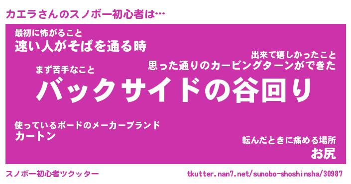 | ヘコむあだ名 | 『カエにゅー』『酢こんぶ』『カエお』 |