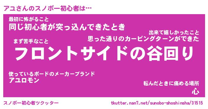| ヘコむあだ名 | 『アユにー』『つくし』『アユ太郎』 |