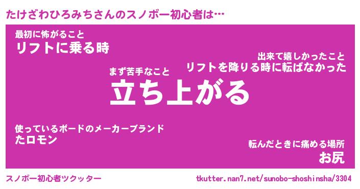 | ヘコむあだ名 | 『たけもー』『なまこ酢』『たけを』 |