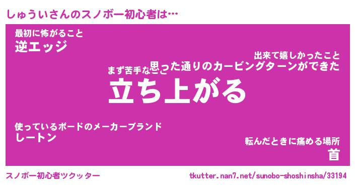 | ヘコむあだ名 | 『しゅにー』『なまこ酢』『しゅ太郎』 |