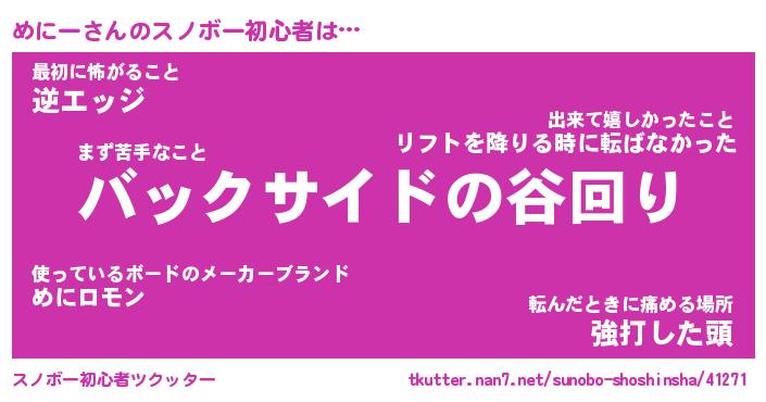 | ヘコむあだ名 | 『めににー』『つくし』『めにぷりん』 |