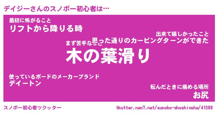 | 意味不明あだ名 | 『ペロリンデイジー』『永久保存デイジー』 |