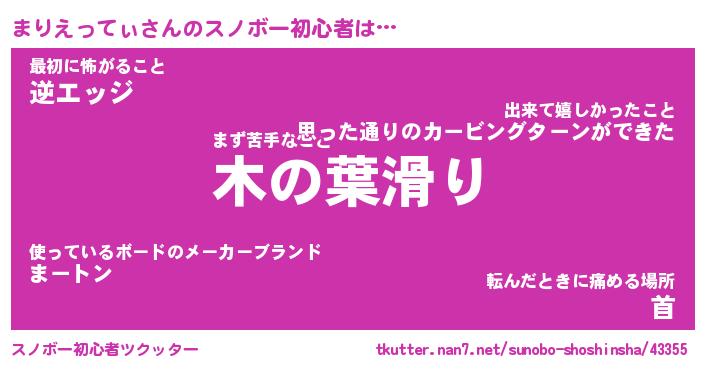 | ヘコむあだ名 | 『まりっふぃ~』『牛乳』 |