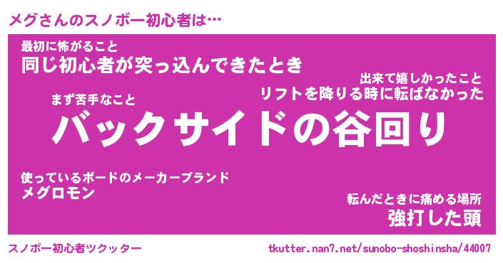 | ヘコむあだ名 | 『メグもー』『レバニラ』『メグお』 |